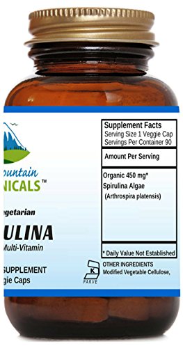 Organic Spirulina Capsules - 90 Kosher Vegetarian Caps - Now with 450mg Organic Spirulina Powder - Nature's Superfood Supplement