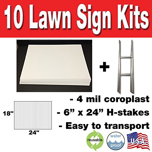 10 Quantity Blank Yard Signs 18x24 with h-stakes for Garage Sale Signs, Graduations, Open House, Estate Sale, or Political Lawn Sign