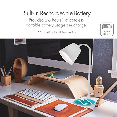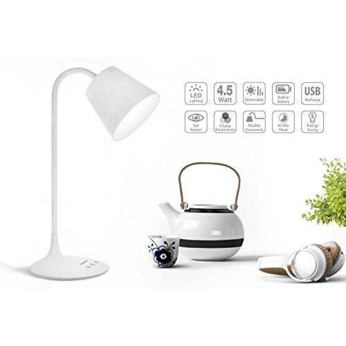 Tenergy Classic LED Desk Lamp With Built-in Battery for Portable Use, Adjustable Brightness, 3 Preset Light Color Temperature, 40-Minute Auto-off Timer