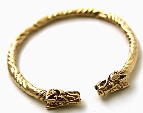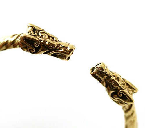 -. Title : Bronze Norse Viking Fenrir Wolf Head Twisted Rope Carve Bangle Cuff Bracelet Arm Ring Pagan Jewelry
