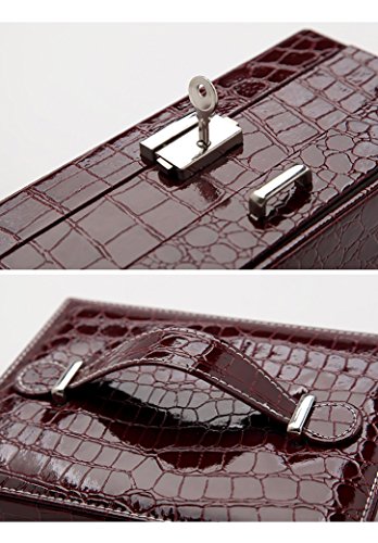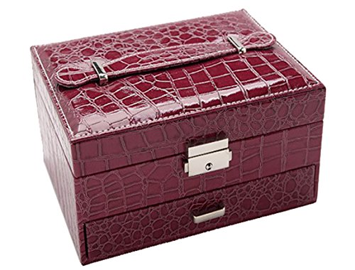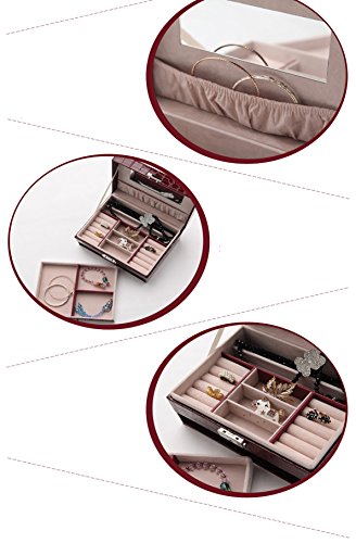 -. Feature : Jewelry Box made of medium density fiberboard and covered with soft lint / Two-layer and removable design provides more space / Handle and mirror provided, snap closure with keys make sure of safety / Carrying small jewelry (earrings, rings, necklace, bracelets, etc) when travel / Earrings, rings, brackets, necklaces can be held