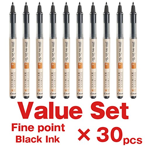 -. Title : Pilot Fude Makase Color Brush Pen, Fine Point, Black Ink, Value Set of 30 with Ecology Sticky Notes