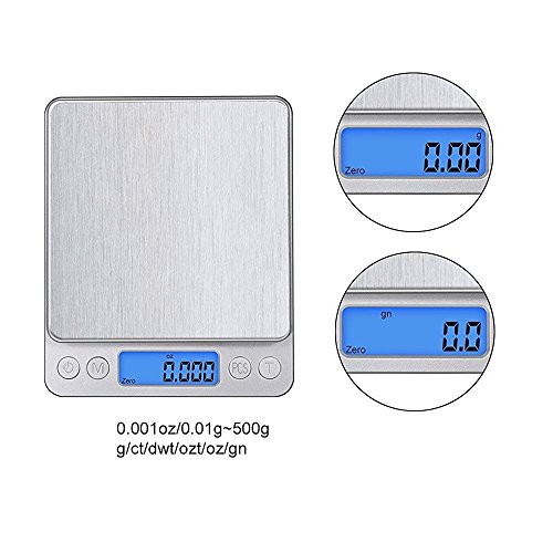 - Accurate easy-to-use - Weigh up to 500g / 17.64 oz; Division: 0.01 g / 0.001 oz, Smart Calobration and will be off automatically in 60 seconds