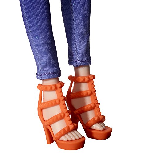 Includes doll, light-up outfit, hair accessory, 2 arm cuffs, safety-pin bracelet, 3 spiky bracelets, pair of shoes, and pair of earrings.