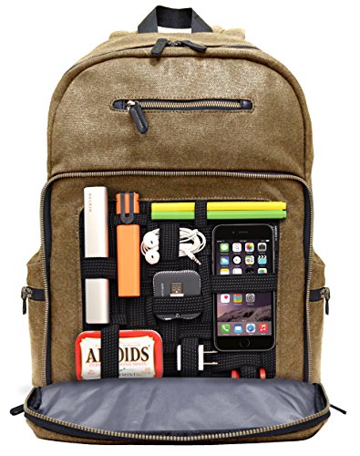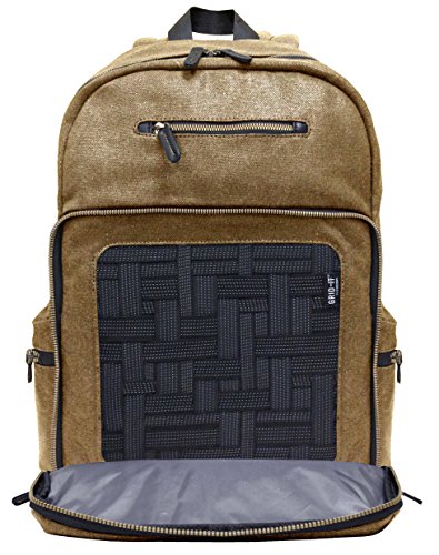 -. Feature : Padded Laptop Compartment fits up to 16" laptop with Built in 9" x 8.5" GRID-IT! Front Pocket / Dedicated Tablet Compartment, Interior Document Pocket, 2 Large Front Storage Pockets In the Grid-It compartment / Water Resistant Wax Canvas Exterior / Convenient Pocket Organizers for additional Storage with Built-In Key chain / Media Pocket Keeps Small Devices handy
