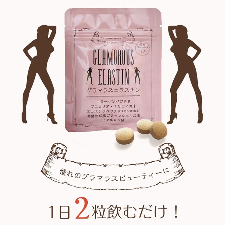 | グラマラスエラスチン サプリメント 海洋性コラーゲン プエラリアミリフィカ エラスチンペプチド プラセンタ ヒアルロン酸 約1か月分 60粒 |