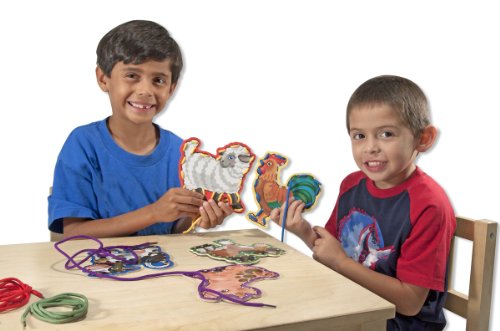 Studio : Melissa Doug Publisher : Melissa Doug Binding : Toy Product Description With charming farm-animal art on both sides, it's fun to practice lacing and tracing skills with this wooden set. Contains five sturdy, double-sided lacing panels, plus five color-coordinated laces! Develop hand-eye coordination and attention skills with this great activity. 0