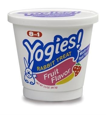Product Highlight(s): 8 in 1 Yogies! Yogurt Treats for Rabbits (Fruit Flavor, 3-1/2oz) 8 in1 is the one-stop shopping supplier for small pet products. From a complete line of diets formulated to meet every pet's distinct dietary needs, to a wide array of treats, health care products and grooming products, 8 in1 is sure to meet the owners' every need.