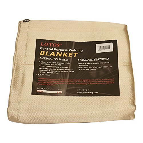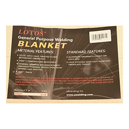 Lotos Technology WB016x8 Lotos 6' x 8' Fiberglass Heat Treated Gold Welding Blanket with Grommets Resists 1000F