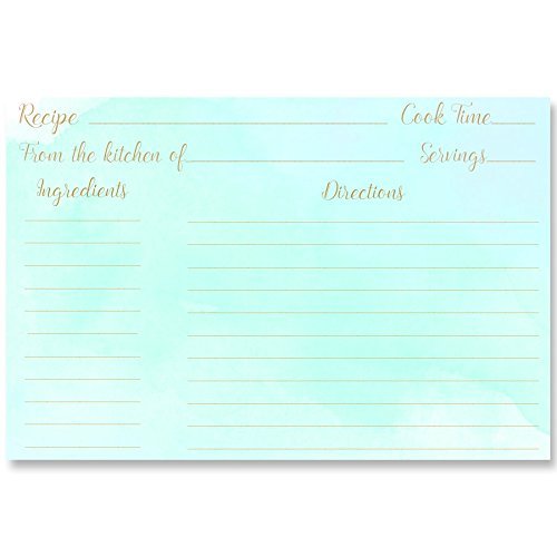 Recipe Cards, Mint, Green, Mint and Gold, Watercolor, Painted, Water Color, House Warming, Bridal Shower, Gift, Size 4 x 6, Wedding, 24 Printed Cards, Double-Sided with Lines