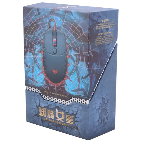 Aula Spider Queen 800-1200-1600 -2000 Four Gear DPI Red backlight Comfortable Ergonomic Design Game Mice, Black