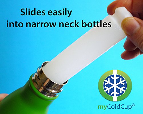 Keeps drinks ice-cold (below 40F or 4C) for more than 6 hrs IF used in a THERMOS and pre-chilled drinks from the fridge are poured into the thermos. NOT designed for use in plastic bottles with water (use ice cubes for that). Does NOT fit in 16 or 20 oz soda bottles, bottled water bottles, or diffuser water bottles (not enough space when diffuser is in bottle). NOT for cooling down drinks which are room-temperature.