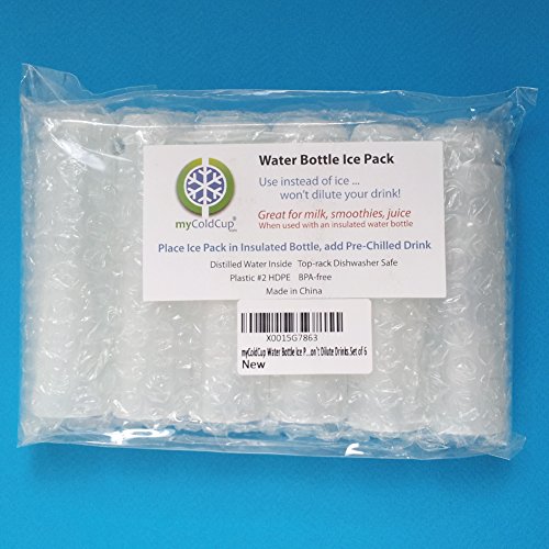 myColdCup Water Bottle Ice Pack, Reusable Ice Stick. BPA-Free. Distilled Water Inside. (Set of 6)