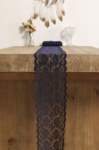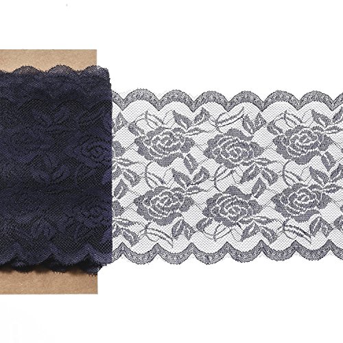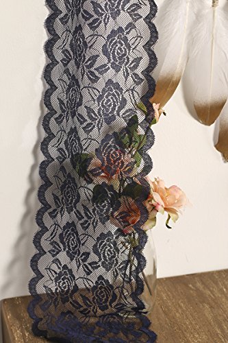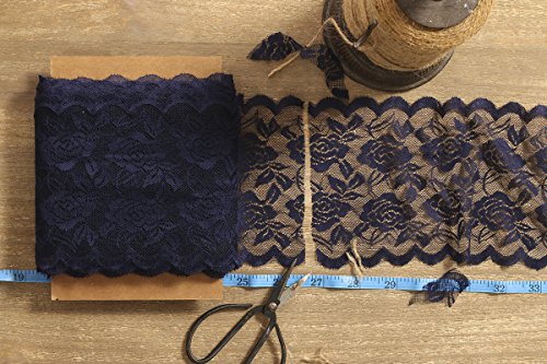 Ling's moment 6"x22 yard Navy Blue Lace Fabric Roll, Gorgeous & Soft, DIY for Rustic Wedding Decoration Burlap Lace Table runner & Chair Sash Bridal Décor Clothing Lace
