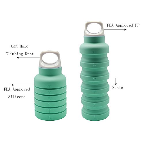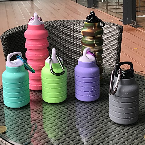 Lightweight Collapsible Sports Travel Water Bottle,500ML Leak Proof Portable Drinking Bottles,BPA Free Foldable Outdoor Silicone Water Bottle for Travel,Sports,Running,Camping,Hiking,Walking