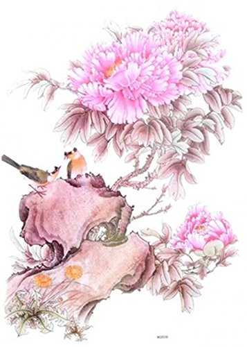 Big size fake tattoo stickers for back Length 12.6" X Wide 8.66" beautiful peony with birds fake tattoo stickers for women