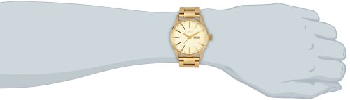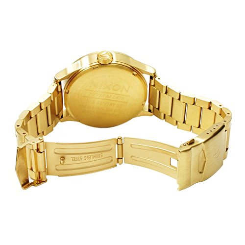 Nixon Men's Sentry Sterling Silver Watch. The Sentry Sterling Silver Watch in All Gold The Sentry's minimalistic aesthetic displays the effortlessly cool look by Nixon. The sleek custom all gold case is a subtle yet bold look. Finally, the construction is reinforced using Miyota Japanese quartz movement to keep the time ticking for years to come. Movement: 3 hand with day/date Japanese quartz Dial: The dial features applied indices, printed seconds track, and custom molded hands with luminous fill. Case: 42 mm, 100 meter, custom solid stainless steel case, hardened mineral crystal, triple gasket crown with enamel fill, stainless steel screw down caseback and spring pin lugs. Band: 23-20 mm tapered custom solid stainless steel 3 link bracelet with stainless steel double locking clasp with micro adjust. Imported By Nixon.