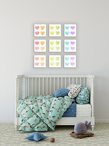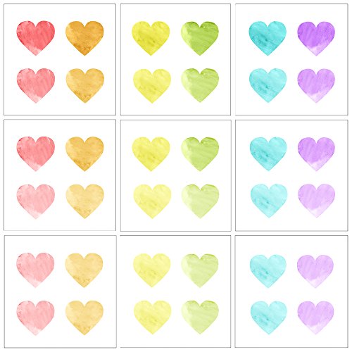 The Stupell Home Décor Collection Rainbow Watercolor Hearts Wall Art Set, 9 Piece