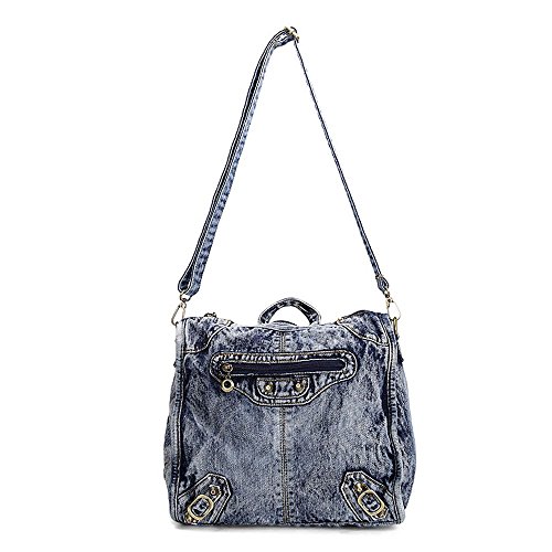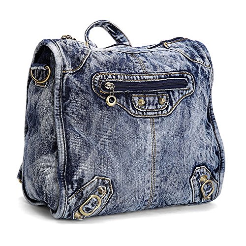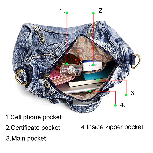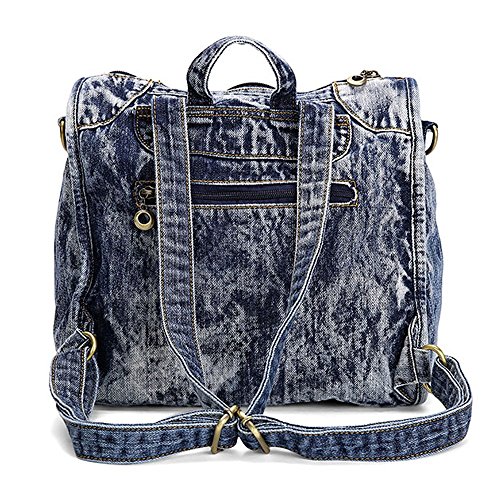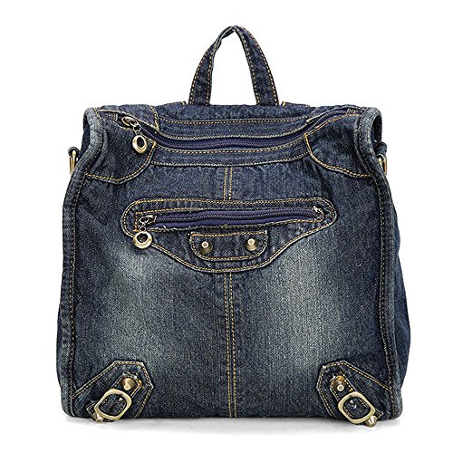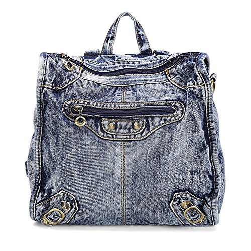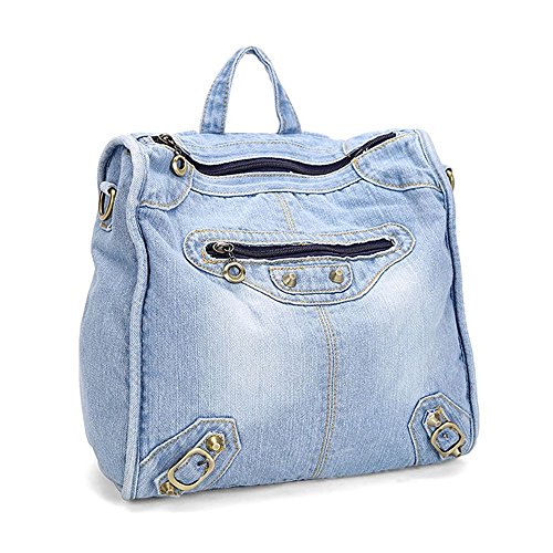 Material:jean and polyester. Size:length 29cm X width 13cm X height 31cmf. construction: 1 main pocket, 1 cell phone pocket, 1 certificate pocket and 1 inside zipper pocket. Function:backpack and shoulder bag. This tote bag is for shopping and travelling. It is fashionable and it can hold your mobile phone, iPad, wallet and toiletry.. 0