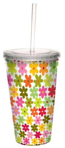 Tree-Free Greetings cc33492 Contemporary Daisy Pattern by Carolyn Gavin Artful Traveler Double-Walled Cool Cup with Reusable Straw, 16-Ounce