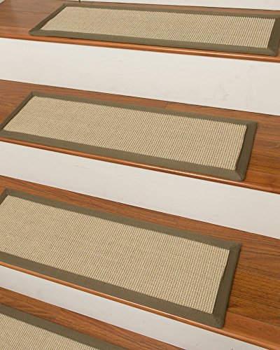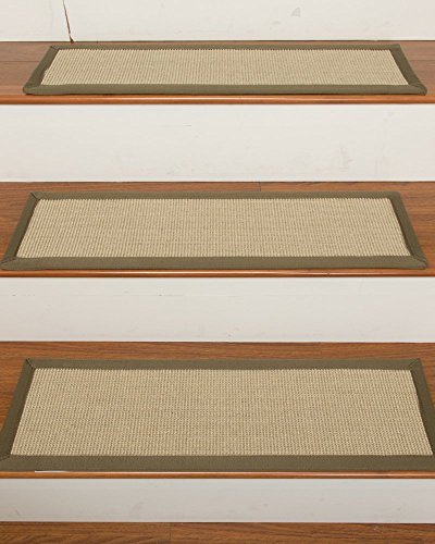 Free & Same Day Shipping within Continental USA. International Shipping Available (Contact us for a quote). 100% Natural Sisal, with cotton border. Creates a rich accent to any home setting. Protects you and your floor and add traction to reduce risk of slipping on stairs. For installation, use "intertape" double-sided heavy duty carpet tape or use carpet nails/tacks. Each set contains 13 pieces.Feature