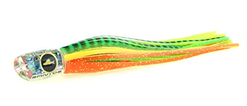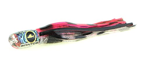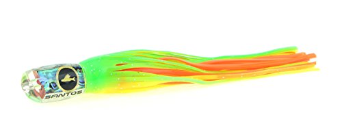 Studio : Santos Tournament Grade Tackle Publisher : Santos Tournament Grade Tackle Binding : Sports Product Description Santos Magna Series lures feature twin jetted scooped faces. They dart, splash, and dive as they closely mimic the actions of pelagic baitfish, mackerels, and small tunas. The movements and aggressive smoke trail of the light tackle Caledonian Magna excites, and induces violent predatory strikes from all bluewater game fish. The Magna's jetted face and (TM) LCM weighting promote faster trolling and extend the range of conditions that this series can be trolled. The Caledonian version can be trolled in any position. However, the Magna series in general is particularly suited to the long and short corners. Santos offshore big game trolling lures are hand cast from premium aerospace grade urethane which comes out of the mold identical to the precision engineered prototype, and as smooth as glass. Unlike most trolling lures which are made of polyester resins, urethane lures are optically clear, ultra hard, chip and crack resistant, UV stable, and can be produced with perfect design proportions. Each lure is also heat and pressure cured for the ultimate in durability. We use only the finest AAA grade shell veneers, soft PVC anti-chafe leader tubes, and custom hand painted Santos Holographic eyes for our lures. Santos lure tailstocks are precision CAD engineered to perfectly fit our double hand tied skirts, and to make an ideal hydrodynamic transition from the head to skirt. Santos trolling lures feature our proprietary (TM) LCM (Low Center of Mass) insert technology that insures that the lure stays upright, and is able to achieve significantly higher trolling speeds. With an upright lure, hook set position and orientation within the skirts are further maintained by our Santos RigLock(TM) system which is a standard feature of all of our big game lures. Santos bluewater trolling lures features supple, vibrant, and durable skirts made in the USA by Ocean Lure Concepts. 0