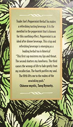 -. Title : Trader Joe's Herbal No Caffeine Peppermint Bag Tea 20 Tea Bags Very Refreshing and Soothing !!!