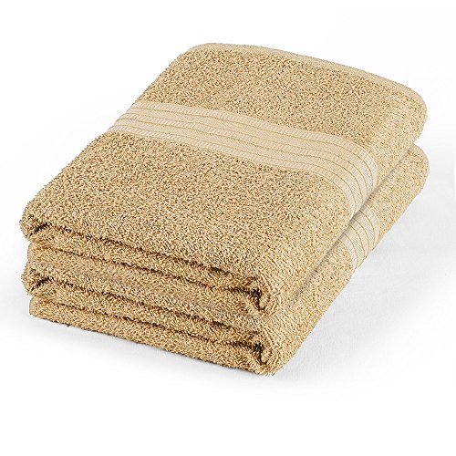 Cotton Bath Small Towel (Sand 2 Pack, 39x21 Inch) 430 GSM by Ama de Casa