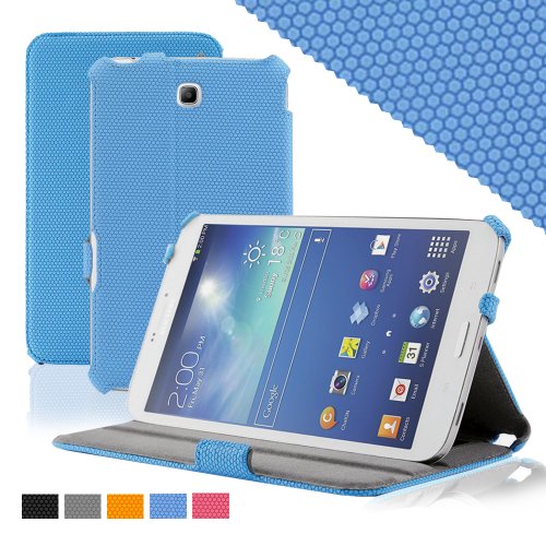 KHOMO ® GRID Material Slim Folio Blue Cover Case With Hand Strap for Samsung Galaxy Tab 3 7.0'' Tablet (GT-P3200 / 3210)