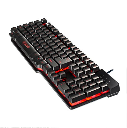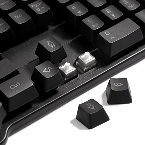 - Feature : Red, blue, and purple LED backlit keys are stylish and add subtle light to dim spaces / Control, brightness, LED illuminated colors, volume, and more with a single keystroke / Durable key caps are laser etched and smooth under your fingers / The ergonomic, low-profile design improves speed and precision with less fatigue / The half mechanical design is specifically altered to improve gaming functions for the life of the keyboard