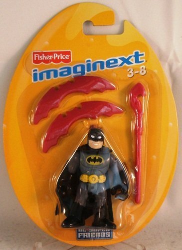 -. Binding : Toy -. Brand : Imaginext -. EAN : 0746775024314 -. Feature : DC Super Friends Imaginext collection from Fisher Price / Target exclusive Batman comes with a staff and 2 Batarangs / For Ages 3-8 -. Label : Fisher Price -. Manufacturer : Fisher Price -. ProductGroup : Toy -. ProductTypeName : TOYS_AND_GAMES -. Publisher : Fisher Price -. Studio : Fisher Price -. Title : Imaginext DC Super Friends Batman Mini Figure Exclusive -. UPC : 746775024314