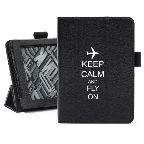 -. Title : Black Amazon Kindle Paperwhite Leather Magnetic Case Cover Stand Keep Calm and Fly On Airplane
