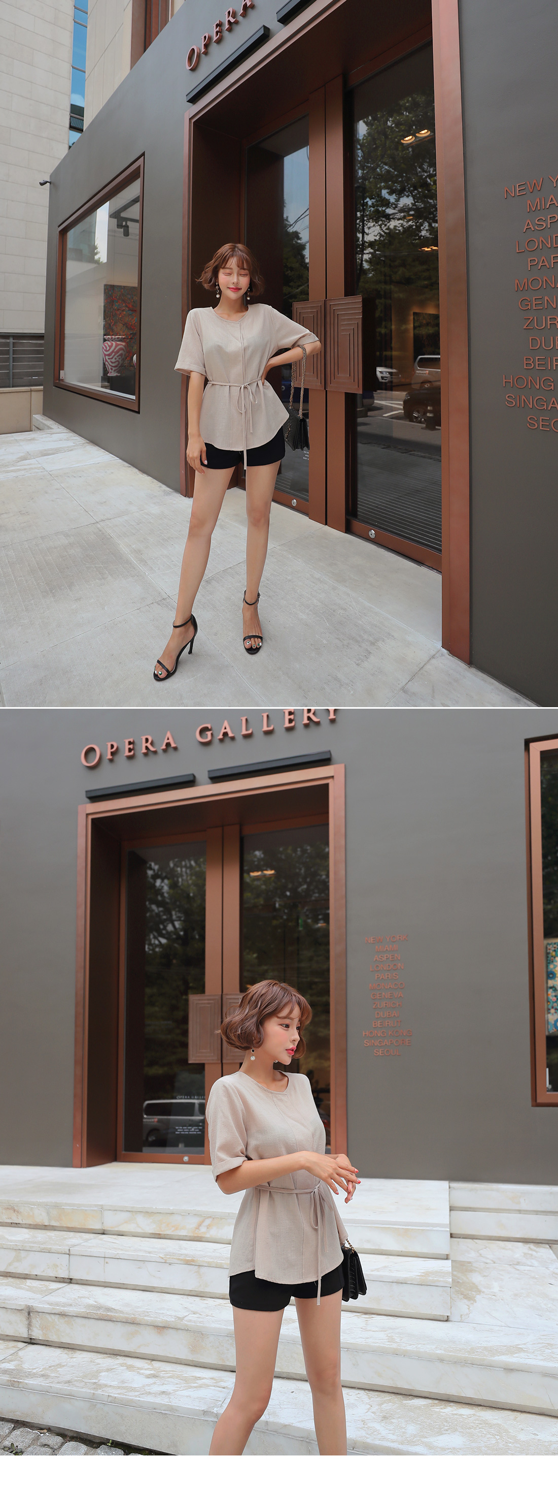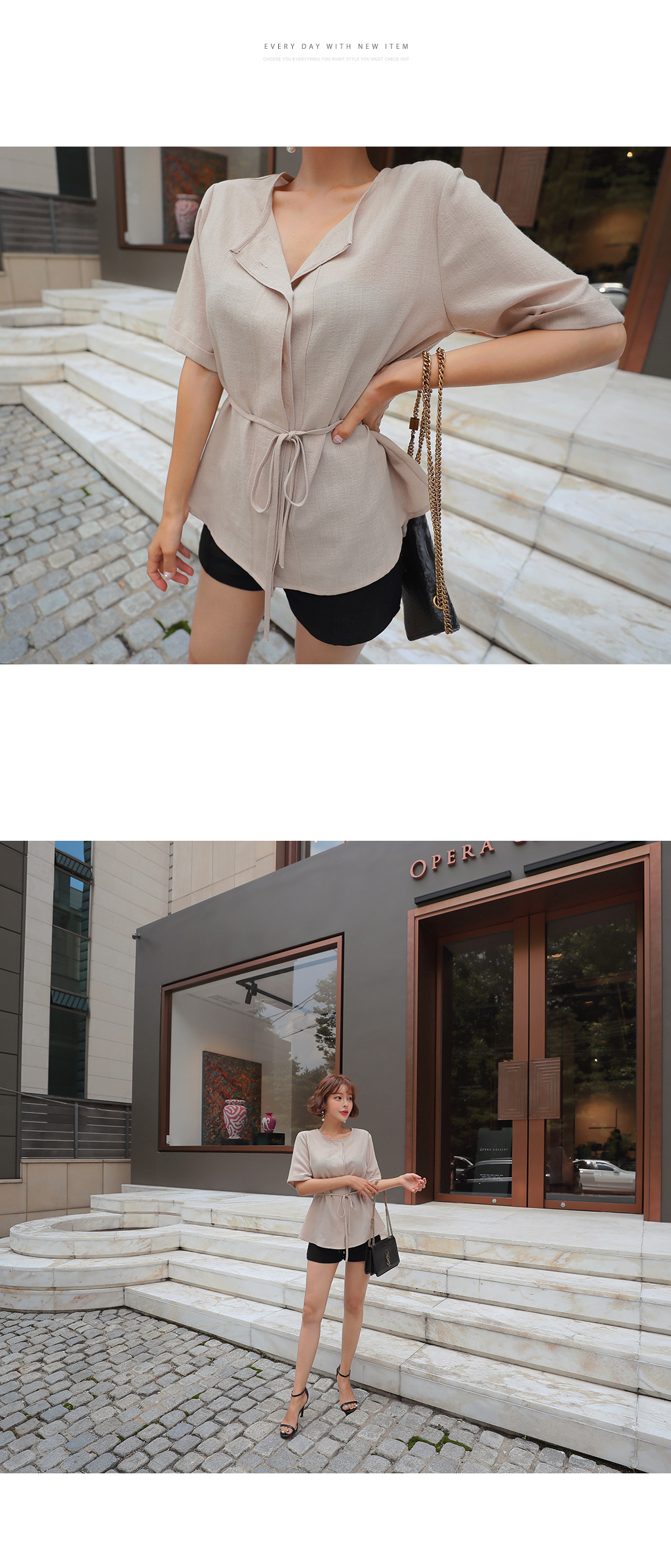 MD COMMENT세련된 룩을 연출해 줄 라운드넥 블라우스를 소개할게요.레이온 혼방소재로 제작되어 S/S시즌 가볍게 즐기기 좋은 아이템인데요.같은 소재의 스트랩이 라이닝되어 있어허리라인을 잡아주면 슬림한 허리라인을 연출할 수 있구요.전체적으로 여유있는 핏으로 부담없이 편안하게 즐길 수 있어요.소매밑단에 롤업디테일로 은은한 포인트를 주었으며프론트 히든버튼 디테일로훨씬 더 깔끔하고 세련된 핏을 연출해주었답니다.깔끔한 디자인에 베이직한 컬러들로 구성되어데일리룩이나 데이트룩, 오피스룩 등 다양한 룩에매치하기 좋아 추천해드리는 아이템입니다!오픈클로징은 프론트 단추로 손쉽게 탈착용 도와드렸답니다.COLOR/SIZE베이지,아이보리FREEMODEL FITTING베이지/FREE