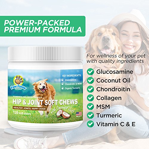 Well worry be-gone with Paw Power Naturals Hip & Joint Supplements for Dogs with Glucosamine, MSM, Chondroitin, COCONUT OIL, Organic Turmeric.