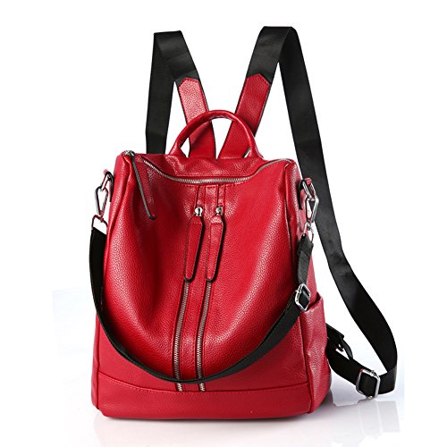 -. Feature : SPECIAL 3-WAY CARRYING --- Convertible versatile bag! You can carry it as a handbag/single shoulder bag/backpack as there is a removable short shoulder strap (shoulder drop is 11"). / PREMIUM MATERIAL --- Lightweight PU Leather with silver color hardware; heavy duty zippers and brown fabric lining; adjustable canvas/leather strap to prevent slidding off your shoulder. Every stitching joints have been reinforced for durability. / WELL ORGANIZATION --- Exterior: 2 front zipper pockets, 1 back zipped pocekt, 2 side open pockets. Interior: 1 big compartment with 2 open pockets and 1 zipped pockets. / LARGE CAPACITY --- This backpack can accomodate your books, small makeups, notebook, wallet, umbrella and 13" thin laptop whose size is under 12.99"(length) x 9.1"(width), and so on. / DIMENSIONS --- 12"(bottom length) x 13"(height) x 5.5"(bottom width). the weight is 2.51 lb.
