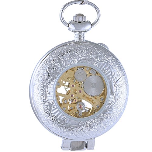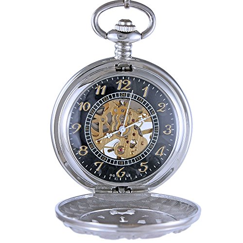 -. Title : OGLE Mens Women Child Dad Father Chain Black White Skeleton Mechanical Fob Pocket Watch Box