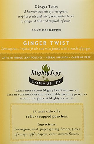 -. Title : Mighty Leaf Tea Ginger Twist, Whole Leaf Pouches, 1.59-Ounces, 15-Count (Pack of 3)