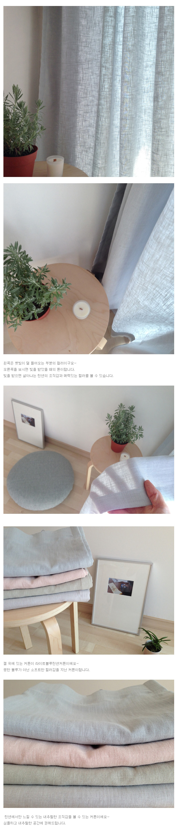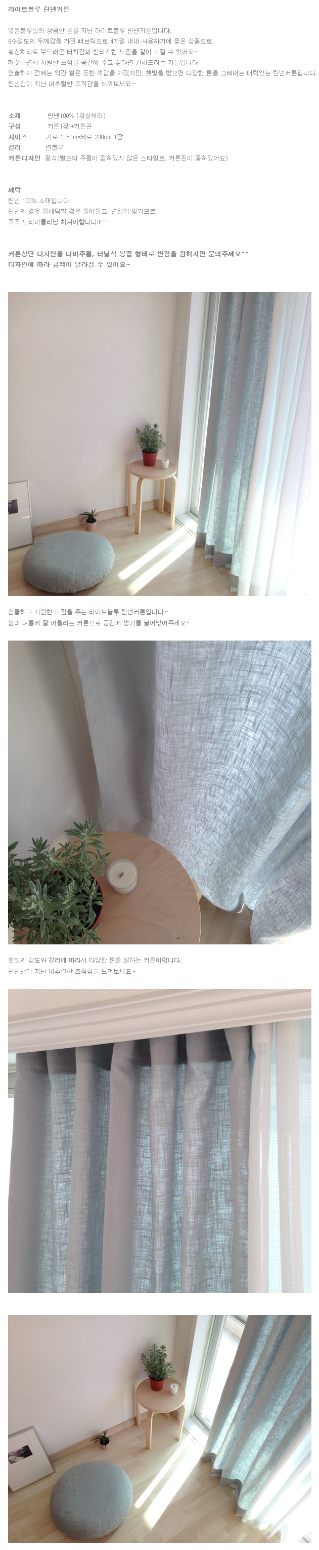 옅은블루빛의 상큼한 톤을 지닌 라이트블루 린넨커튼입니다.