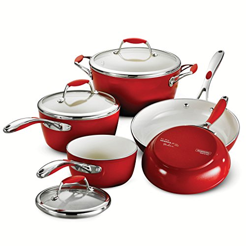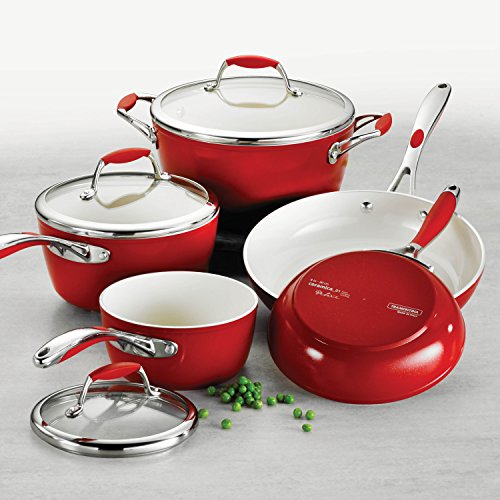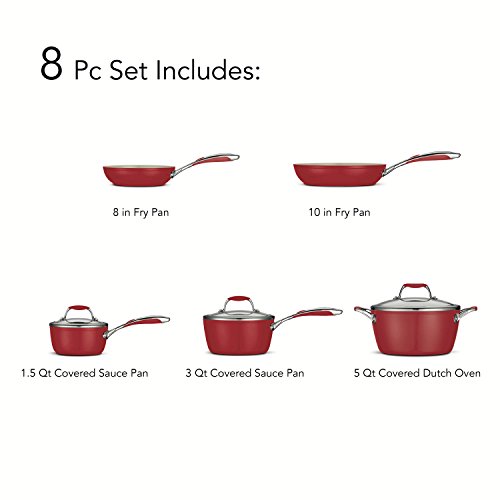 TRAMONTINA 80110/201DS 8-PIECE GOURMET CERAMICA 01 DELUXE COOKWARE SET, METALLIC RED