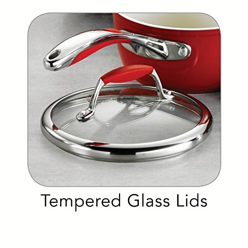 • Ergonomic handle features a stay-cool, soft-grip finish while the heat- and shatter-resistant tempered glass lids provides easy and safe cooking