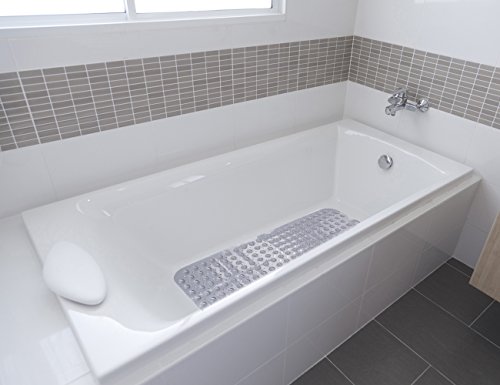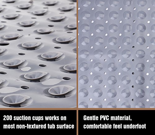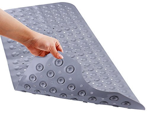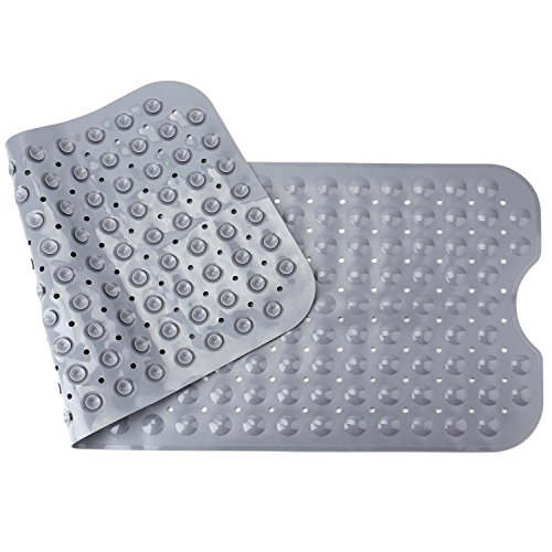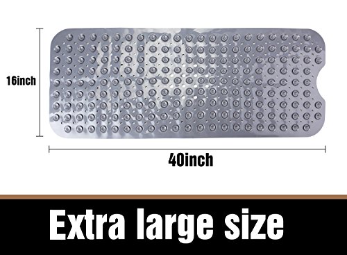 THETIS Homes Rectangle Bath tub and Shower Mats, Machine Washable, Anti-Bacterial Non-Slip wih Suction Cups, 40-Inch-by-16 Inch, Gray