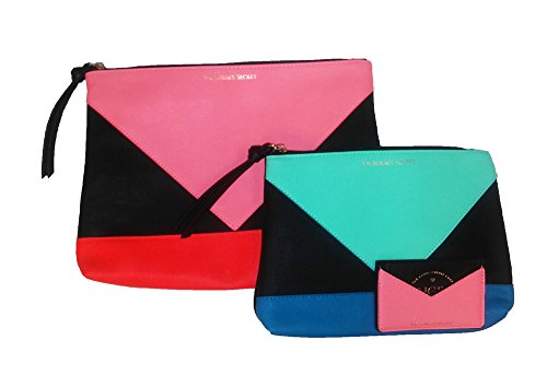 Victoria's Secret Trio Set Cosmetic Travel Bag Colorblock Black/Mint/Coral