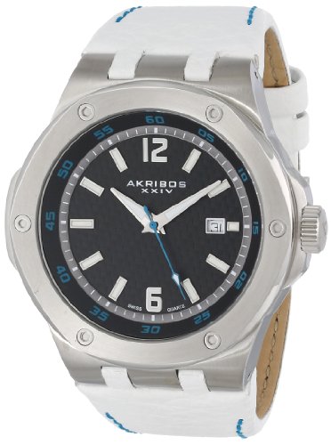 -. Title : Akribos XXIV Men's AK651WT Essential Stainless Steel White Leather Watch