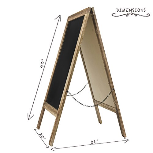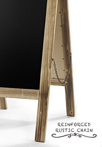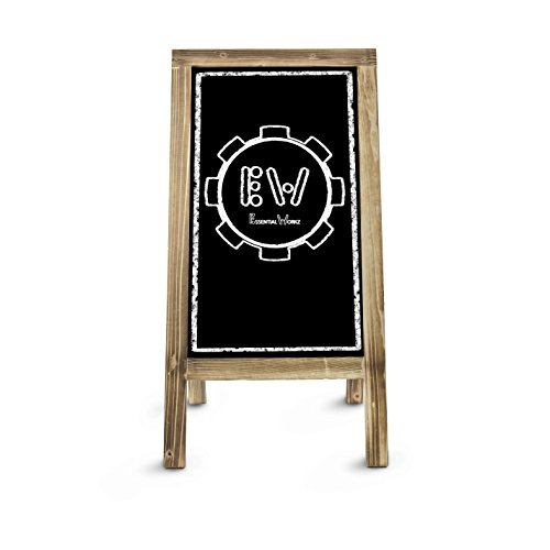 Rustic Style Distressed A-Frame Sidewalk Chalkboard Sign / Restaurant Message Board / Wooden Menu Display This beautifully handcrafted rustic chalkboard will upgrade and enhance any venue. Whether you're looking to draw customer attention to your business or welcome guests at your wedding reception, this board is perfect! • Beautifully Handcrafted Wooden Frame • Wind Resistant • Double Sided Display • Reinforced Rustic Chains On Both Sides For Extra Support • Large Size Board For Optimal Display - 20" x 40" • Heavy Duty Durable Hinges • Works Perfectly With Chalk Markers And Regular Chalk • Built With Thicker Wood For Sturdiness • Cleans Easily and Beautifully • Folds Thin For Easy Storage • Individually Wrapped In Bubble Wrap • Great For Receptions, Restaurants, Pubs, Home, and Events We hope you love your board as much as we do! Our Quality Guarantee Here at ESSENTIAL WORKZ, we put a lot of time and effort into designing and creating products that our customers love. We make sure that outboards don't just look great, but are also awesome quality so that they last longer than others. We pride ourselves on 100% customer satisfaction. Don't be afraid to reach out to us if you aren't fully satisfied. We are here to help! Color and distressing vary due to the fact that our chalkboards are handcrafted out of natural wood.Feature