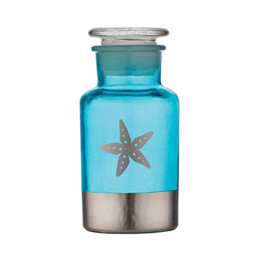 Prinz 2.5 X 5.25 Inch Coastal Clear Blue with Silver Band & STARFISH Icon Pharmacy Glass Bottle