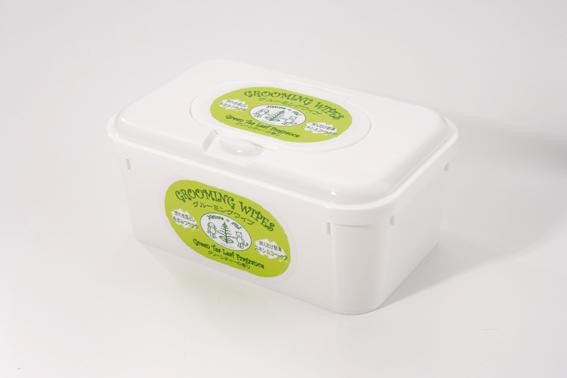 | グリーンティーエキス入りのウェットティッシュ。グリーンティーリーフが皮膚をさっぱりとさせ、臭いを抑えます。 |