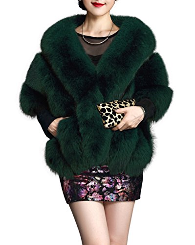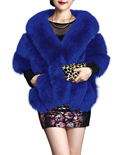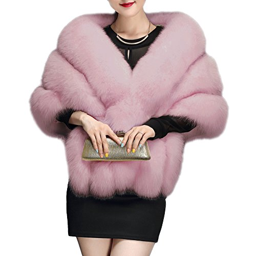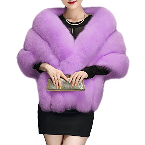 Amore Bridal Winter Luxury Party Faux Fox Fur Long Shawl Cloak Cape for Women