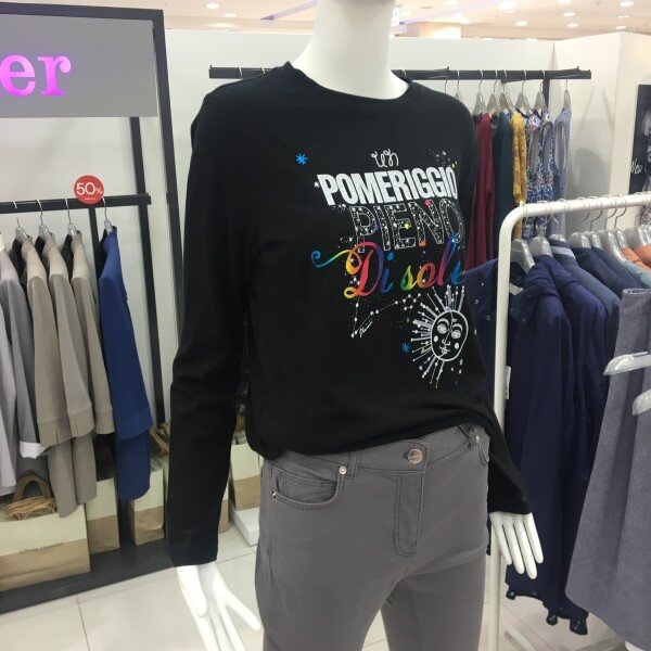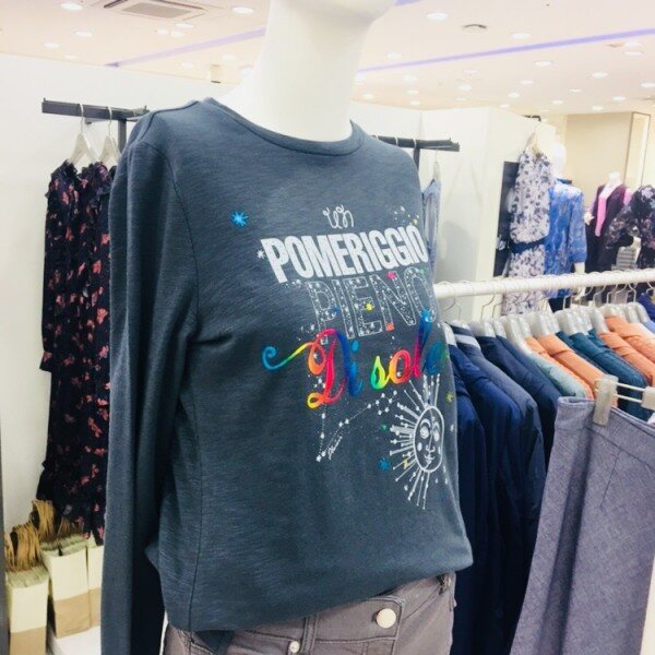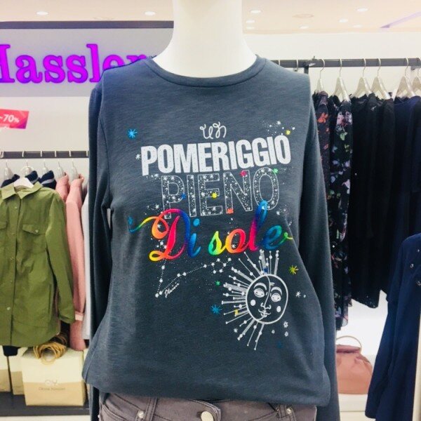 화사하고 캐주얼한 프린트가 포인트인 라운드 티셔츠