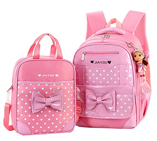-. Title : JiaYou P.R.Imary Girls Students Polyester School Backpack and Lunch Bag 2 Sets(Pink)