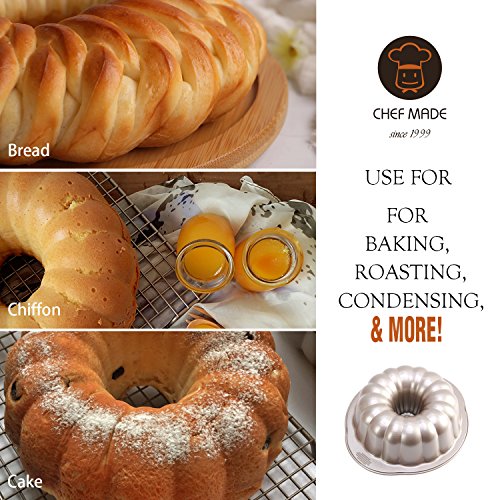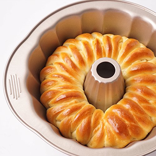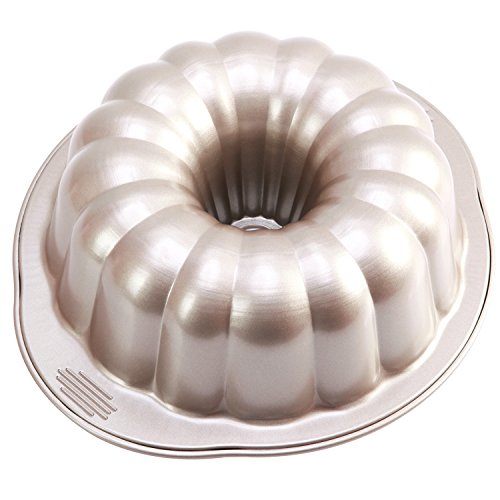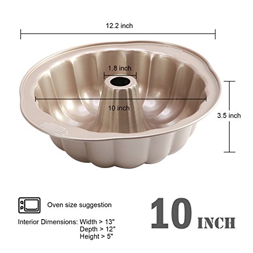 CHEFMADE 10 Inch Non-stick Bundt Cake Pan,Heavy Duty Pumpkin-shaped Bakeware FDA Approved, Oven Roasting Baking Fluted Tube Cake (Champagne Gold)